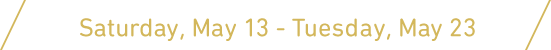 / Saturday May 13 – Wednesday May17, and Saturday May 20 /